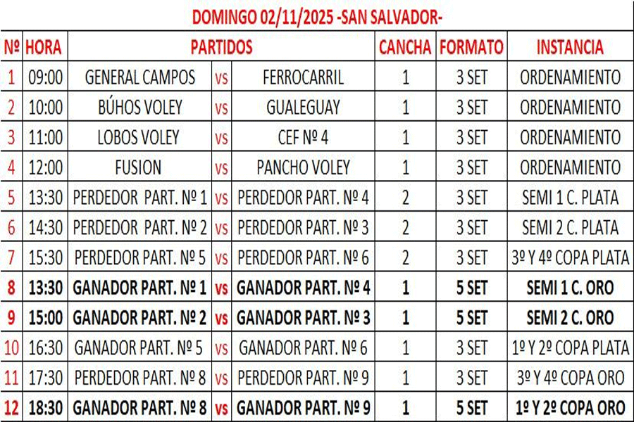 Para la comodidad de los asistentes, habrá un completo servicio de cantina durante toda la jornada. La entrada es libre y gratuita, brindando una excelente oportunidad para disfrutar de las finales de este deporte.