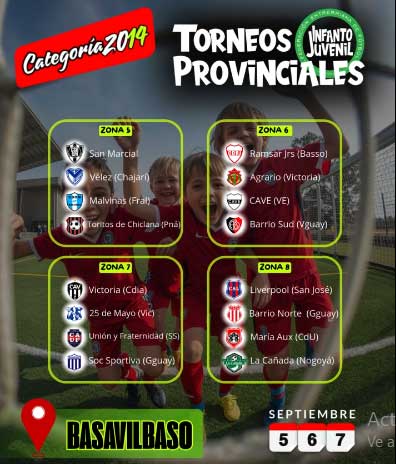 El próximo fin de semana, del viernes al domingo, se llevará a cabo en Basavilbaso el torneo provincial de fútbol infantil, categoría 2014. El evento, organizado por la Federación Entrerriana de Fútbol, reunirá a 32 equipos, entre los que se encuentran Unión y Fraternidad de San Salvador.
